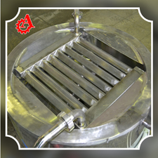 Жиротопки с паровой рубашкой выполняется по схеме трехслойной емкости, если используется змеевик, или по схеме двухслойной емкости, если используются штрипсы. В случае использования змеевика, выполненного из трубы, внутренняя и средняя стенки жироплавителя образуют рубашку, которая заполняется промежуточным теплоносителем. При этом, нагрев промежуточного теплоносителя происходит при прохождении пара по змеевику. |