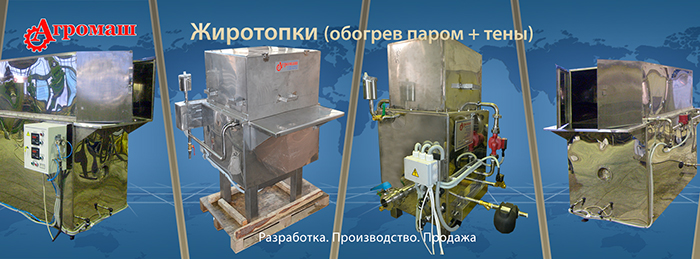Жиротопка - двустенный сосуд, установленный вертикально на опорах, из нержавеющей стали, укомплектован электрическими ТЭНами и циркуляционным насосом. Жиротопка (агрегат быстрого растопления жиров) имеет пульт управления, включающий пускатели ТЭНов и термодатчик для регулирования температурных режимов в плавителе |