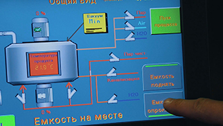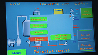 Во мремя работы показывает температуру внутри и работу перемешивающего устройстваю Процесс полность автоматизирован с одной кнопкой. Он отрабатывает процесс в полном объёме без вмешательства человека. Измельчающие ножи плавно разгоняются при помощи частотного преобразователя, чтобы выйти на необходимый уровень.
