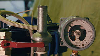 Работает водокольцевой встроенный насос, который создает ваккум в системе.