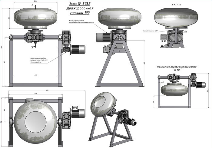 Дражировочная машина представляет собой котел, находящийся на валу тихоходного редуктора, установленного на раме.