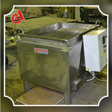 Емкость прямоугольная на 16 блоков какао, трехслойная 440л (раб) 500л (геом), из нержавеющей стали AISI304, с термоизоляцией, с наклонным дном, с ТЭНами для нагрева воды в рубашке (до 60 грС) и раздельно нагревом воды (глицерина) в трубных решетках (до 100грС) с системой рециркуляции теплоносителя, с расширительным баком, со съемными трубными обогреваемыми решетками, со съемной крышкой, с закрывающейся дверцей, с приемным столиком для блоков. датчики ТСМ в продукт, в рубашку и в трубную решетку, нержавеющий кран Ду50, Н слива= 300мм |