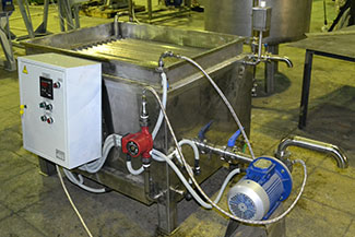 Пульт управления, включая два 2-х канальных измерителя-регулятора, пускатели ТЭНов, рециркуляционного насоса, продуктового насоса, перемешивающего устройства, система защиты ТЭНов. |