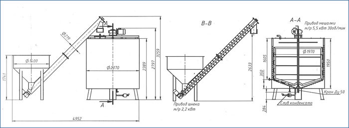 Эскиз сироповарочного котла с шнековой загрузкой